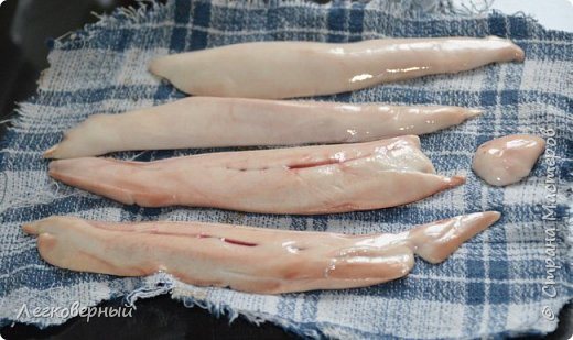 - Тщательно промыть железы рыбы и протереть их бумажным полотенцем.
