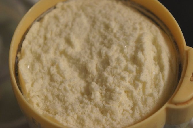 - На литр чистой воды берите 300 г порошка. Это примерно двенадцать столовых ложек с небольшой горкой либо три 300-миллилитровых стаканов. В результате вы получите продукт с 2,5-процентной жирностью. Вы можете регулировать этот показатель самостоятельно путем уменьшения или увеличения порошка.