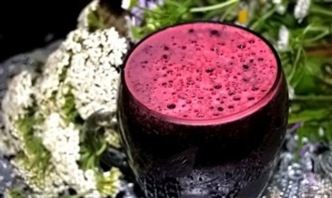 - Даём напитку время остыть, затем вливаем отжатый ранее из черничных ягод сок.