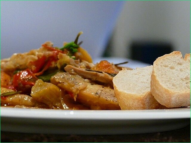 Подаем овощное рагу с курицей в горячем или теплом виде, обязательно с кусочком хлеба. Приятного аппетита и до новых встреч!