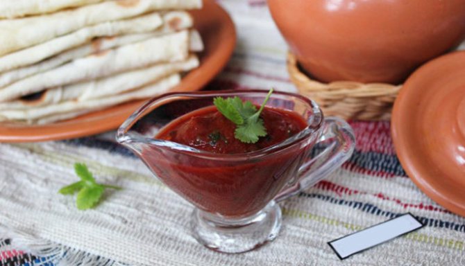 Совет! Этот соус не обязательно варить, его можно подавать в свежем виде, смешав пюре из алычи со свежей зеленью, чесноком и специями. Но такую приправу нельзя хранить, её готовят перед подачей.