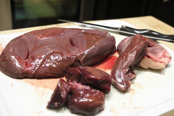 - После того, как внутренний орган приобрел равномерную холодную температуру, его можно промыть под краном. Затем нужно очень осторожно удалить желчный, если он есть. Также вырежьте соединительную ткань и пленки – они придают блюду некрасивый вид, трудно жуются и тоже могут привносить нотку горечи.