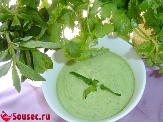 Для остроты и яркости вкуса, в соус можно добавлять разнотравье, кинзу, небольшое количество давленного чеснока.
