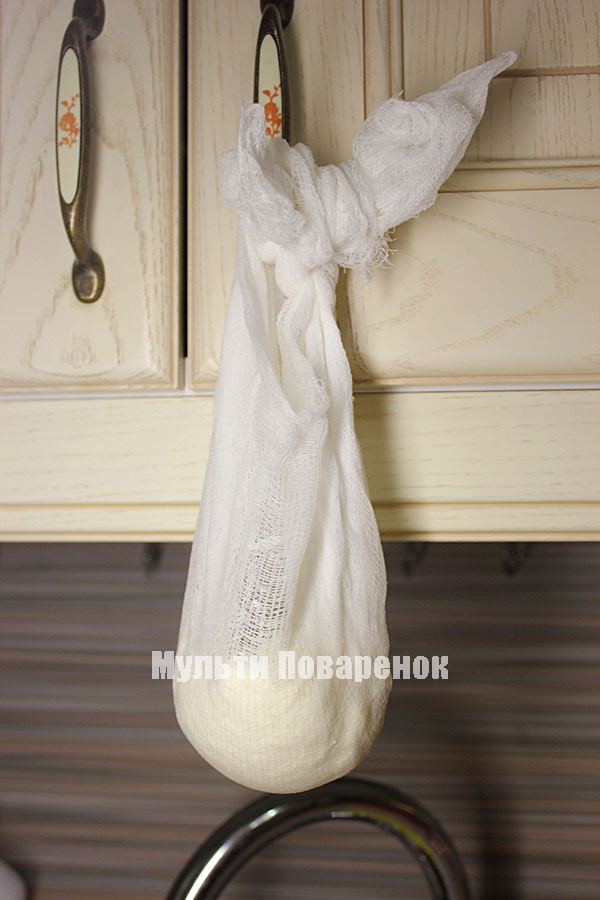 - Мешочек вывешивают над миской и держат так в течение 2 часов. Теперь он готов к употреблению.
